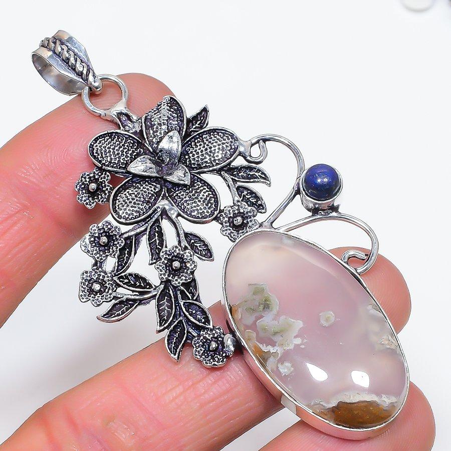 Подвеска из натурального мохового агата, лазурита, стерлингового серебра 925 пробы, 3,27 дюйма, F4P13 — купить товар онлайн с бесплатной доставкой до всему миру!