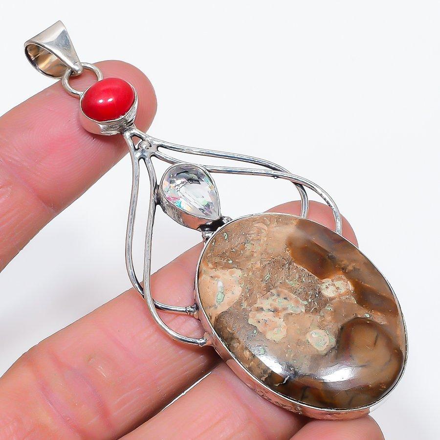 Подвеска из серебра 925 пробы с натуральным бокситом и белым топазом 3,55 дюйма