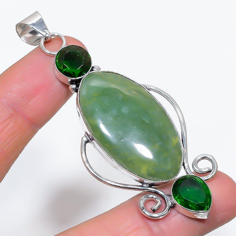 Натуральный нефрит, диопсид, серебро 925 пробы, ювелирная подвеска 3,11" V1l49