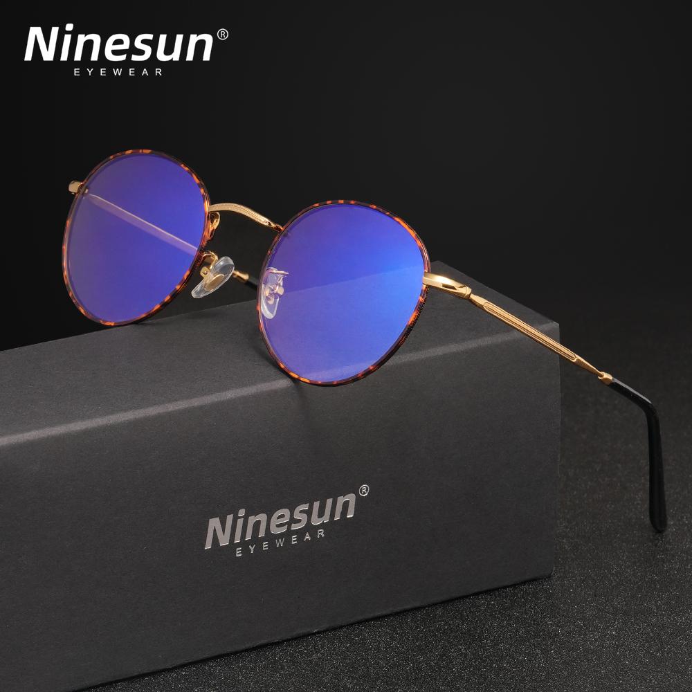NINESUN бренд сплав анти-синий свет очки для женщин и мужчин круглая оправа очки 99% блокировка синего излучения студенческие оптические линзы очки