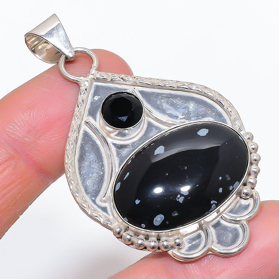 Натуральный Снежный Обсидиан, Подвеска из Стерлингового Серебра 925 пробы 2,40"