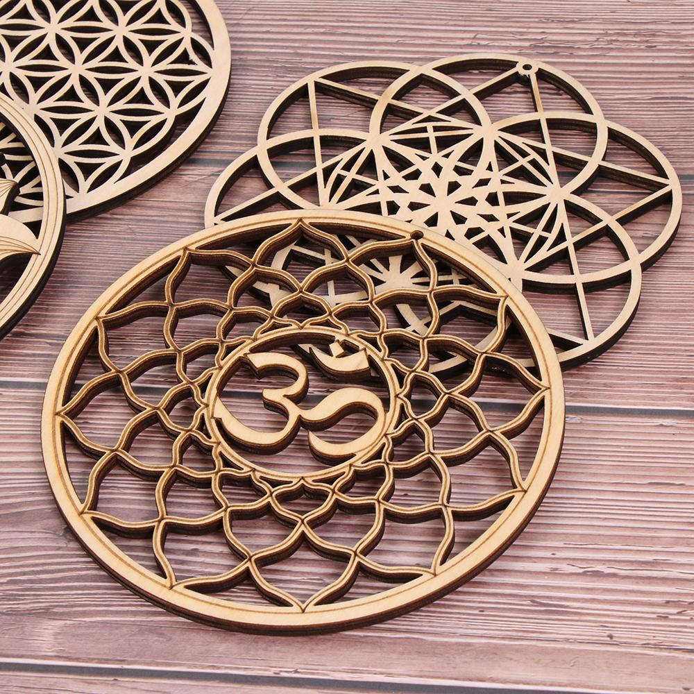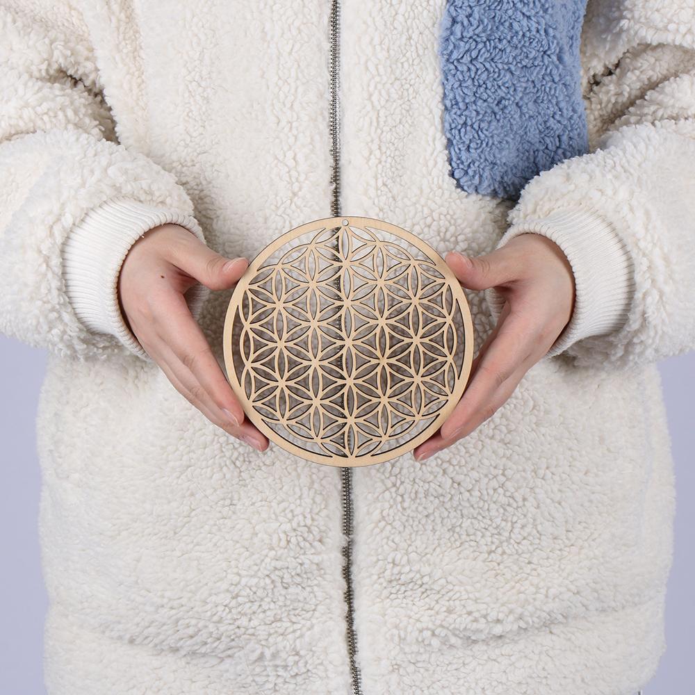Подставки ручной работы Форма Цветок Жизни Срез Деревянная основа Коврик энергии Цветок Жизни Деревянная настенная табличка