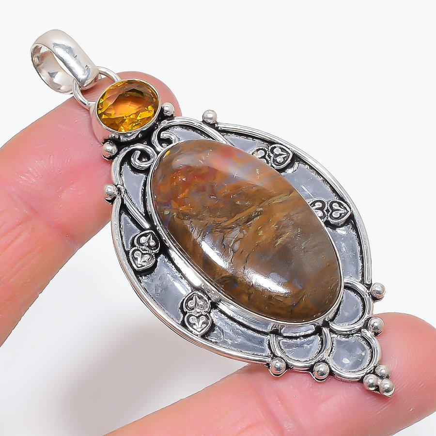 Подвеска из серебра 925 пробы с натуральным тигровым глазом и цитрином 2,99 дюйма