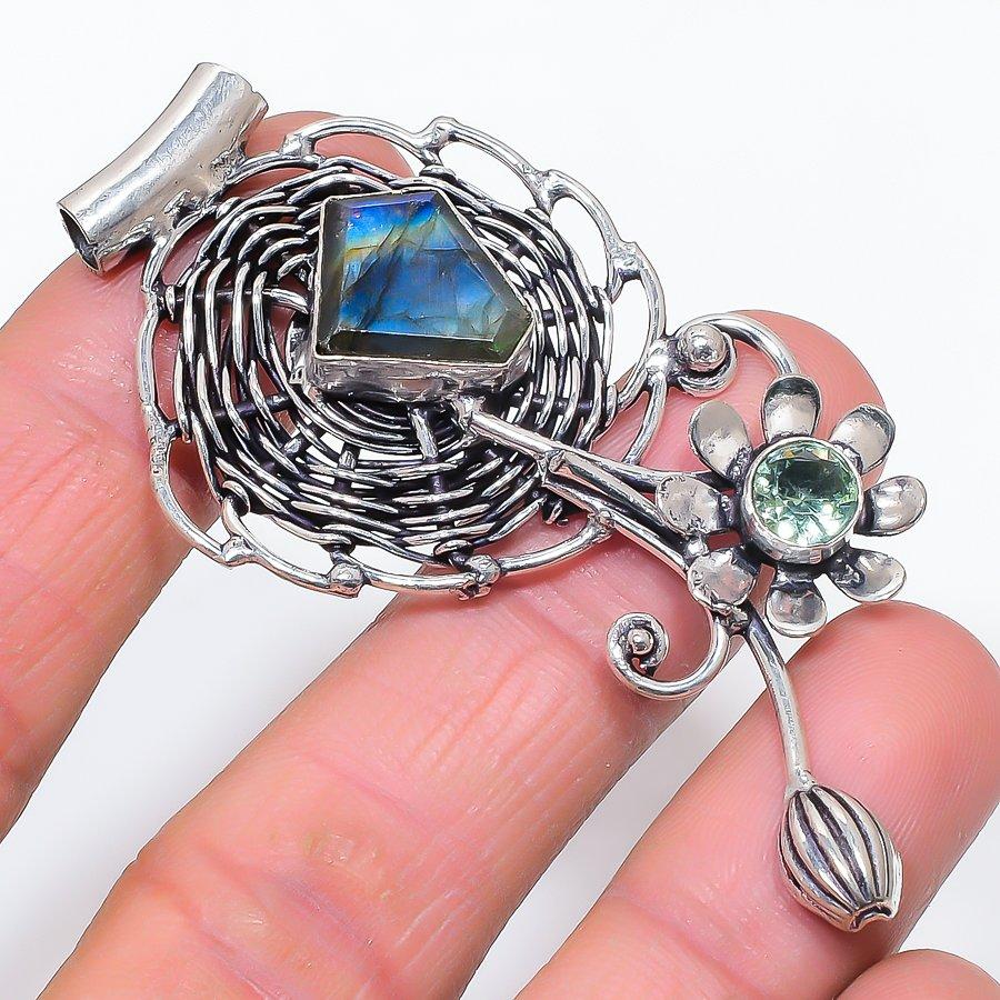 Подвеска из серебра 925 пробы с натуральным лабрадоритом и цаворитом 2,96 дюйма h0P19