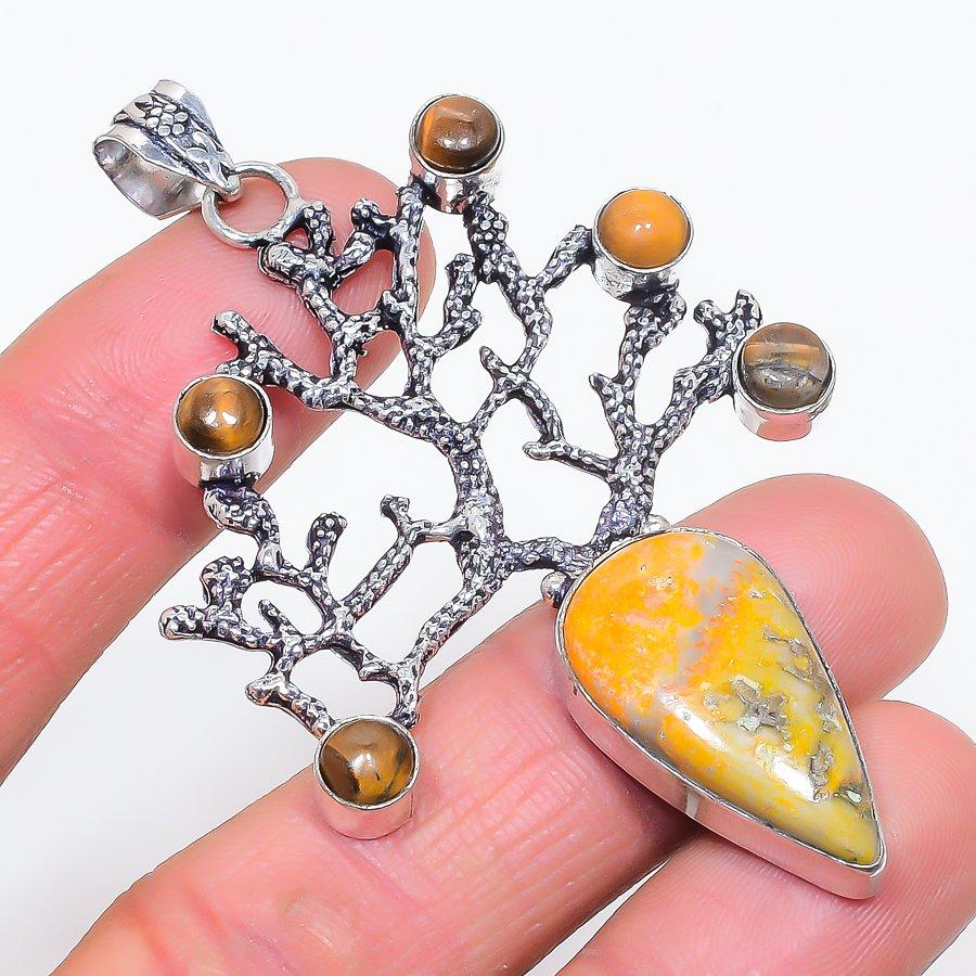 Подвеска из натурального яшмы «Шмель», тигрового глаза, стерлингового серебра 925 пробы, 2,99 дюйма