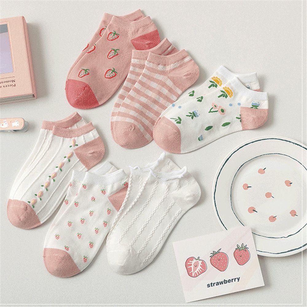 Fashion Boat Socks Shallow Mouth Cute Strawberry Ankle Socks Short Tube Socks Sweet