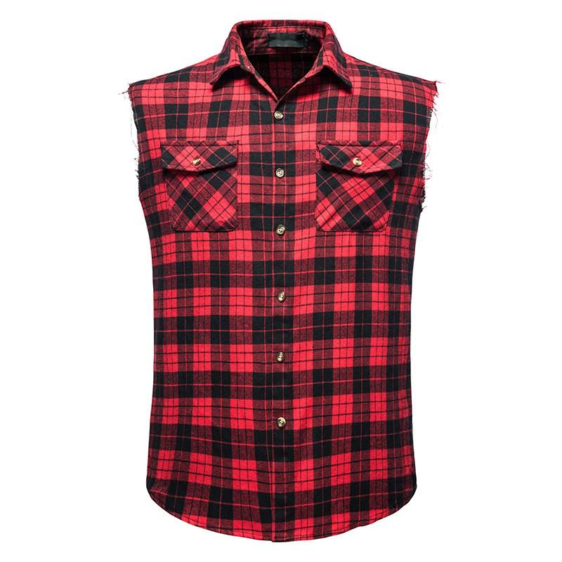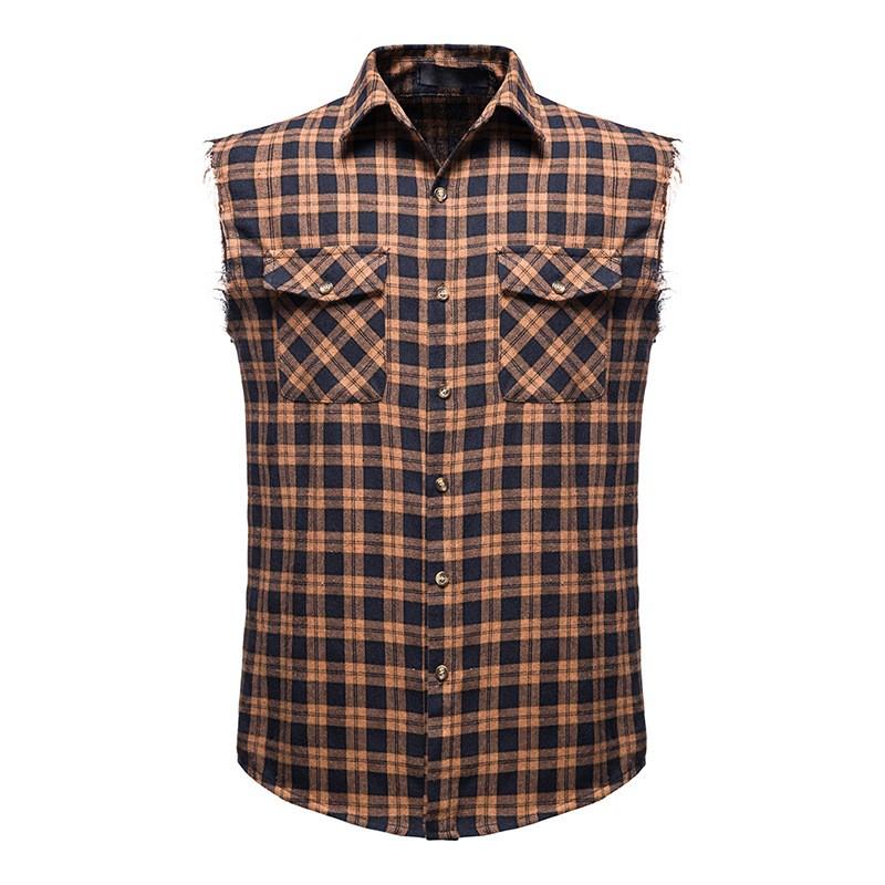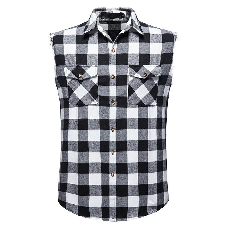 Мужская летняя повседневная клетчатая рубашка без рукавов с узкими лацканами, разноцветная рубашка