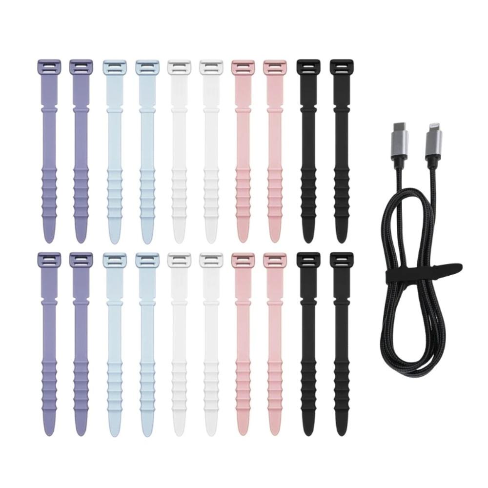 20pcs Cable Management Silicone Cable Ties Multipurpose Cord Organizer Straps Cable