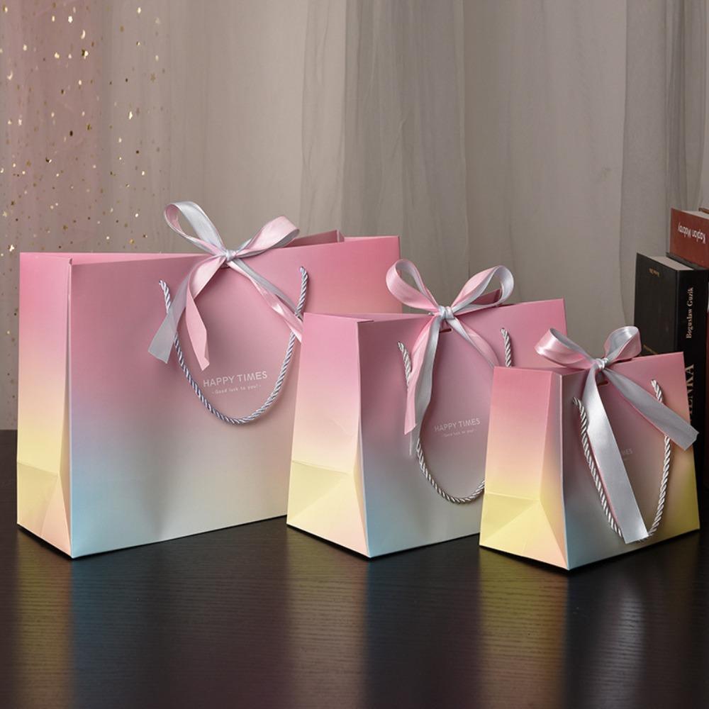 Бумажный подарочный пакет для вечеринки с бантом из ленты, хозяйственные сумки, новые подарочные пакеты