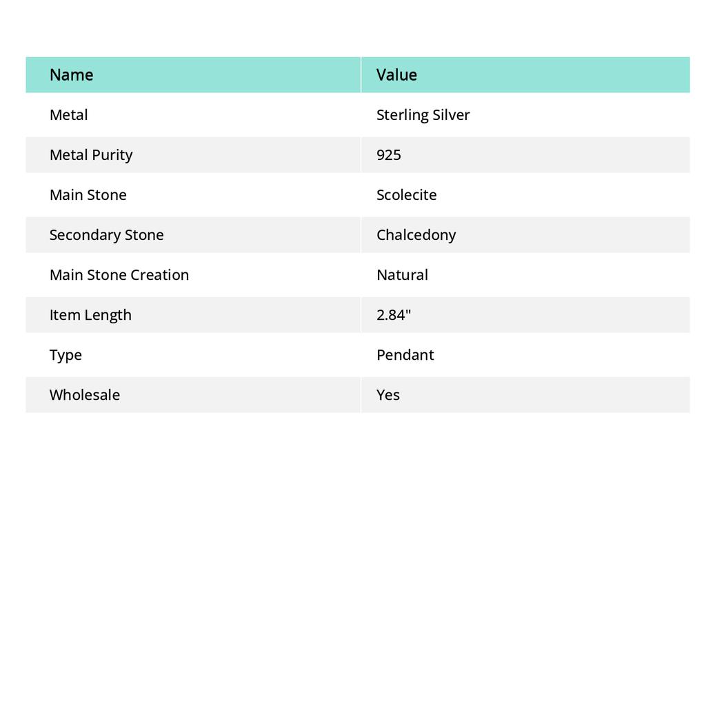 Натуральный сколецит, халцедон 925 стерлинговое серебро ювелирная подвеска 2,84"