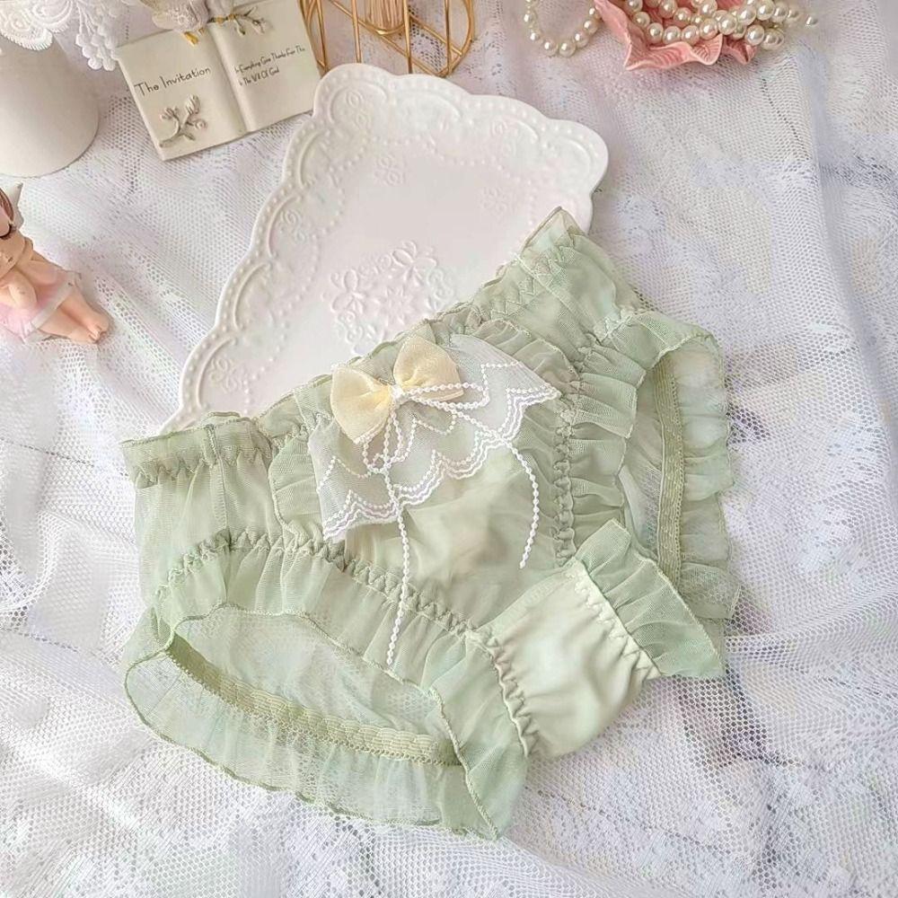 Bowknots Womens Panties See Through Ruffle Briefs Cute Sexy Underwear