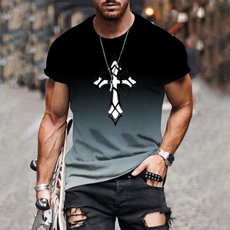 Модная 3D-печать с градиентным принтом, мужская летняя популярная спортивная и досуговая универсальная футболка с круглым вырезом, пуловер