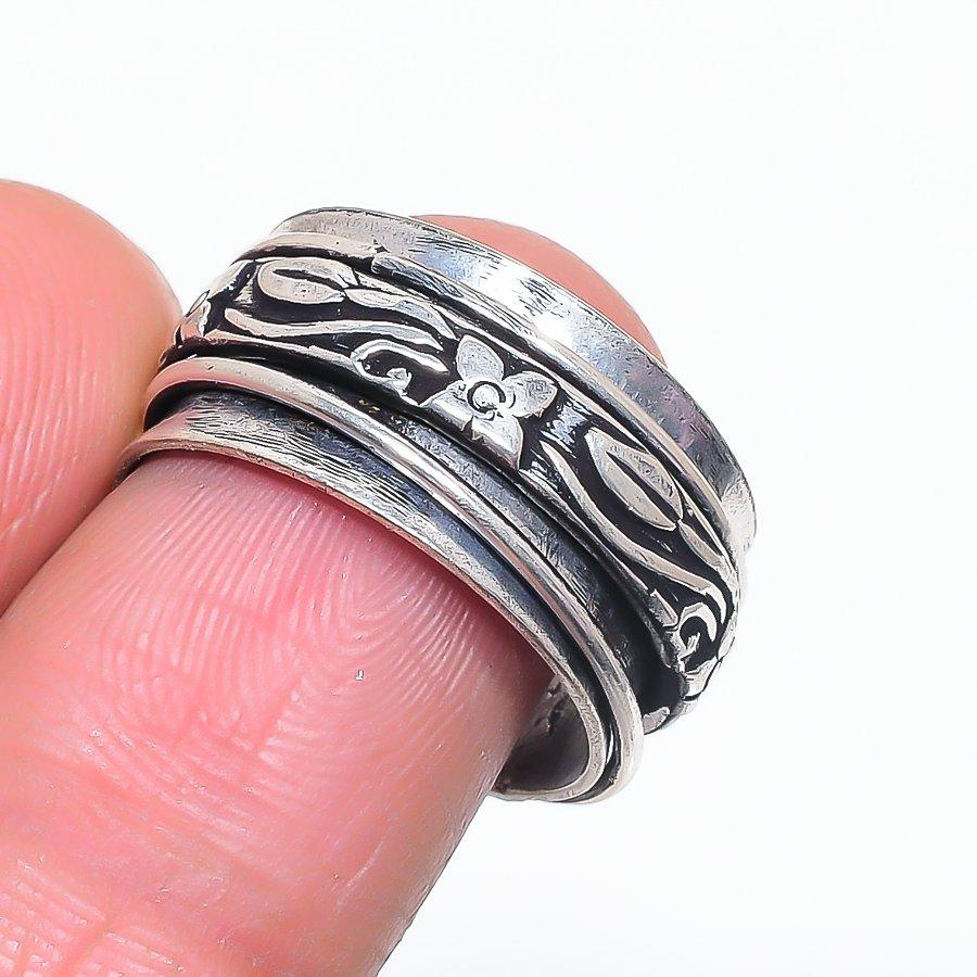 Натуральный Медитационный Спиннер Ювелирные Изделия Серебряное Кольцо 925 Пробы Размер 8.5 q2c68