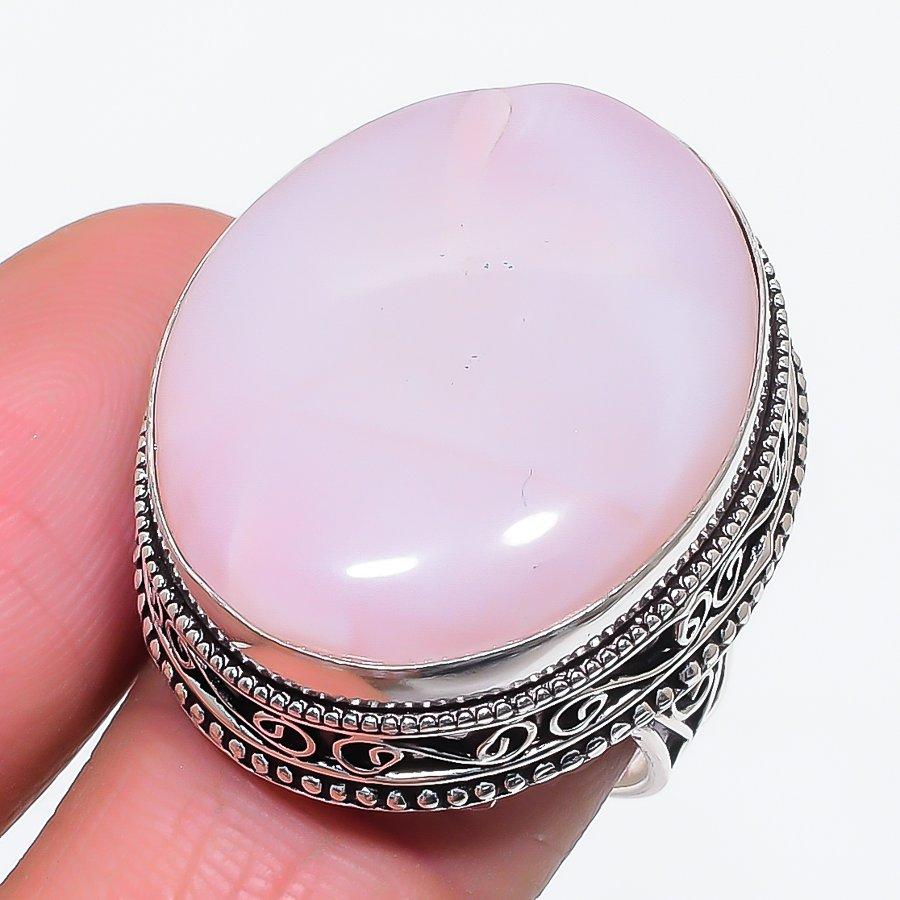 Кольцо из серебра 925 пробы с натуральным розовым кварцем, размер 9 k4w47