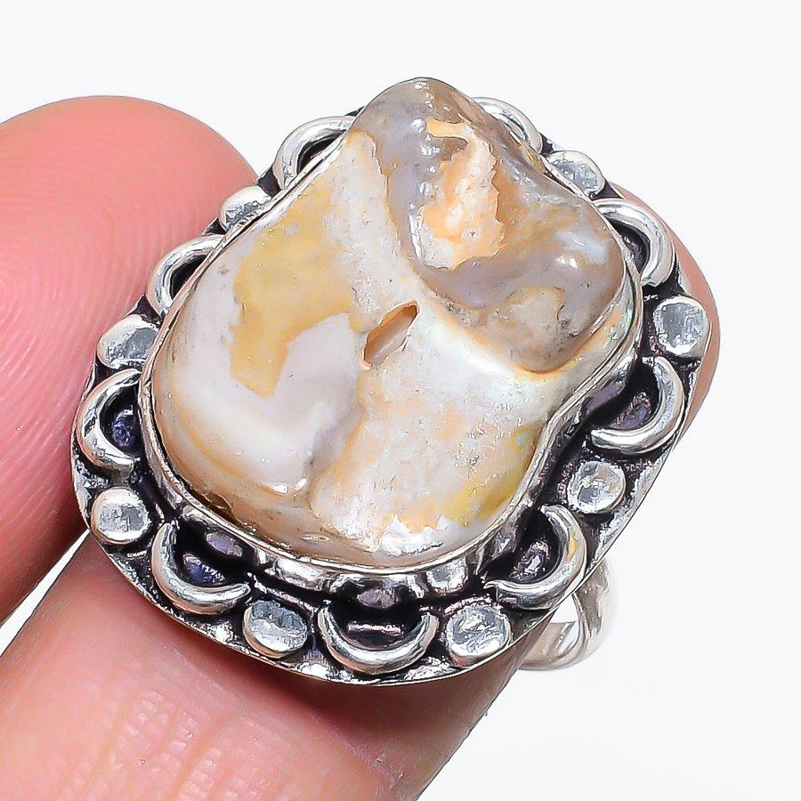 Натуральный жемчуг Бива Драгоценный камень Серебро 925 пробы Ювелирное кольцо Размер 9.5 I1R06