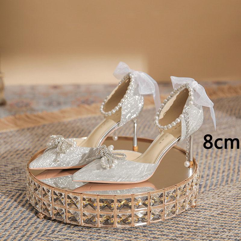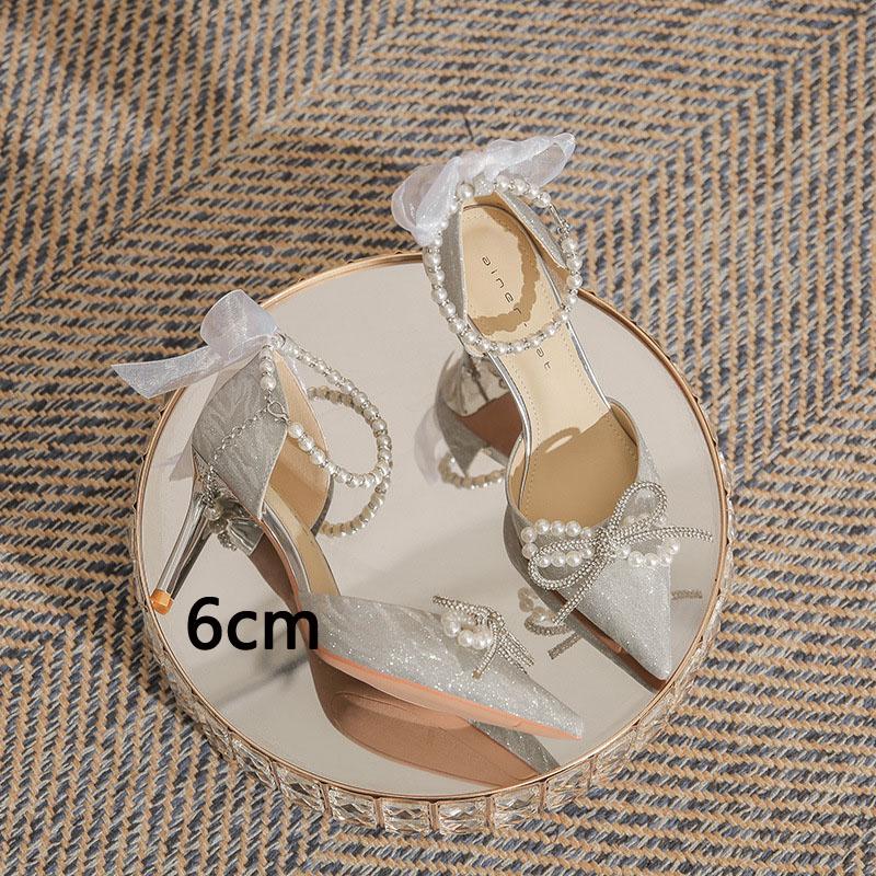 Серебряные свадебные туфли на высоком каблуке со сказочными кристаллами, свадебные туфли, новые французские туфли на тонком каблуке, не уставшие ноги, элегантные женские туфли