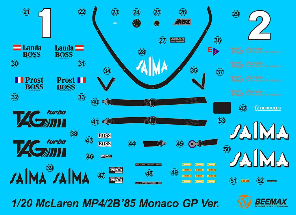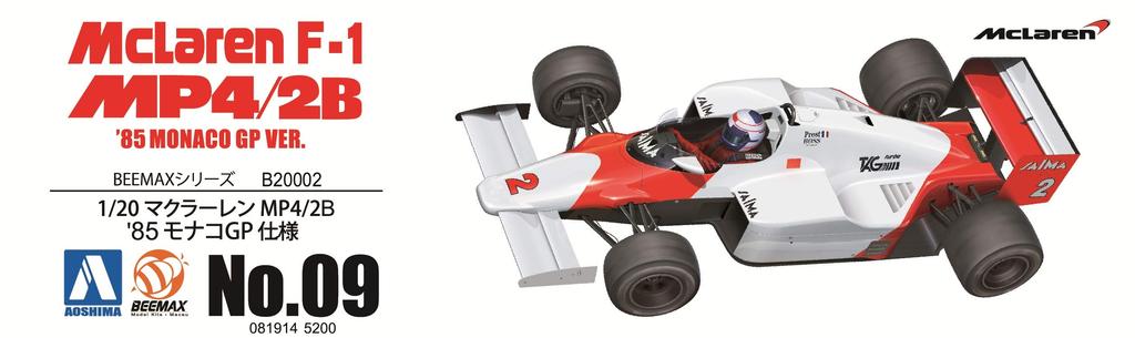 Aoshima Bunka Kyozai BEEMAX Series McLaren 1985 Monaco Grand Prix Технические характеристики Пластиковая модель 1/20 № 9 MP4/2B