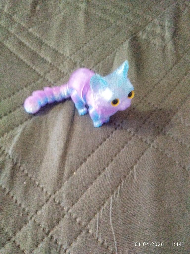 Наимелейший , с подвижными лапками и хвостиком, необычным ледяным окрасом котейка! Туловище в середине немного подвижно. Очень довольна покупкой. Продавца рекомендую. СПАСИБО огромное за положительные эмоции и качественный товар!