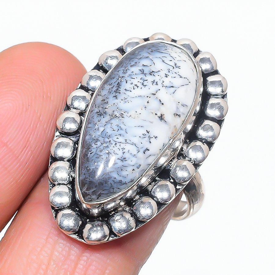 Натуральный дендрит опал драгоценный камень 925 стерлингового серебра ювелирное кольцо размер 8.5 c0B04