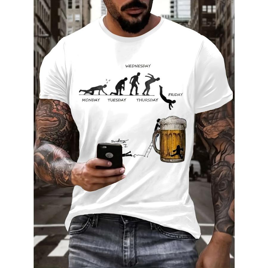 Летняя мужская футболка с градиентным цветом, графикой пива и 3D-принтом, с коротким рукавом и круглым вырезом, повседневная одежда для отпуска, мужской топ для улицы