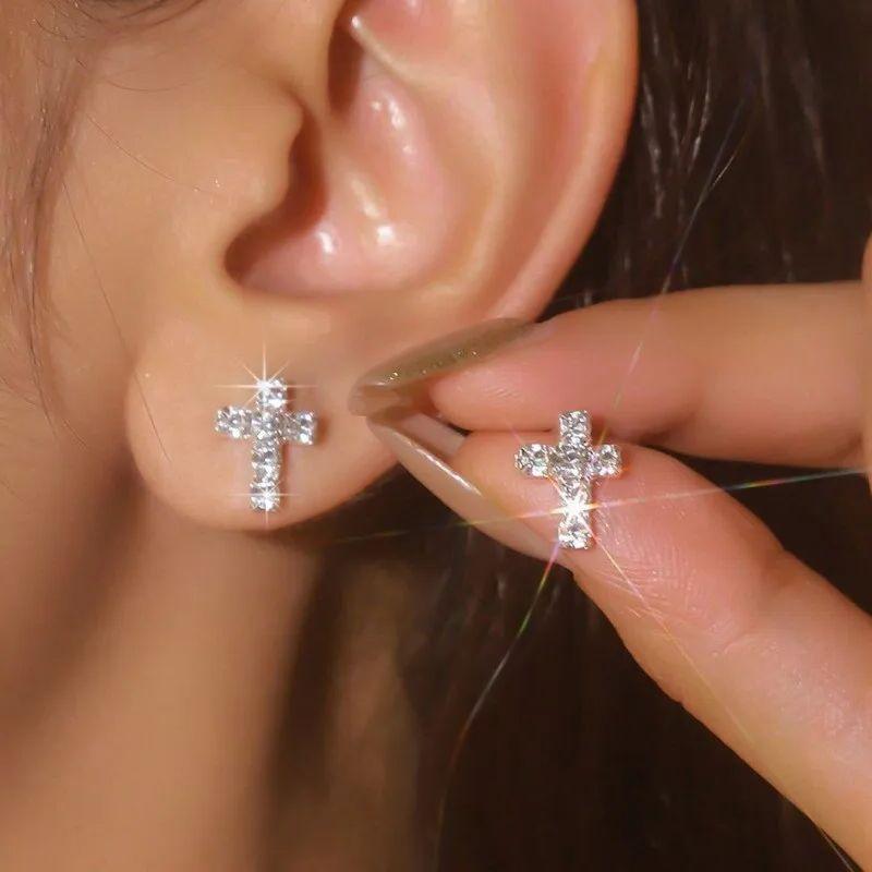 Серебряный цвет Мини Имитация Стразы Крест Серьги-гвоздики для Женщин Имитация Циркона Серьги Ювелирные Изделия Аксессуары — купить товар онлайн с бесплатной доставкой по всему миру!