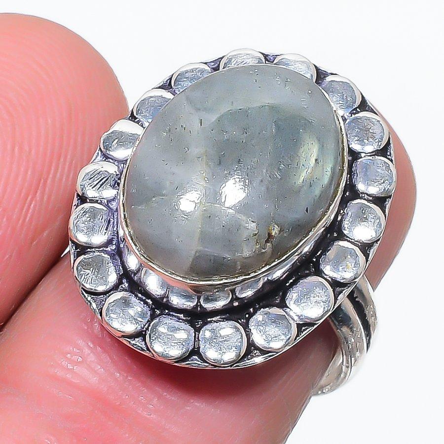 Кольцо из серебра 925 пробы с натуральным лабрадоритом, размер 8 c5E10