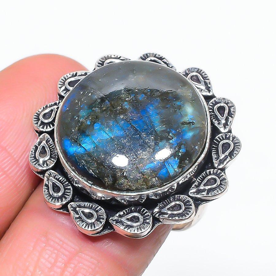 Кольцо из серебра 925 пробы с натуральным лабрадоритом, размер 7,5 v8H77 — купить товар онлайн с бесплатной доставкой до всему миру!