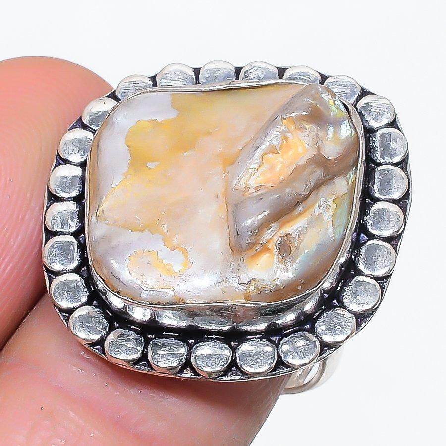 Натуральный жемчуг Бива Драгоценный камень Серебро 925 пробы Ювелирное кольцо Размер 8 Z2L90