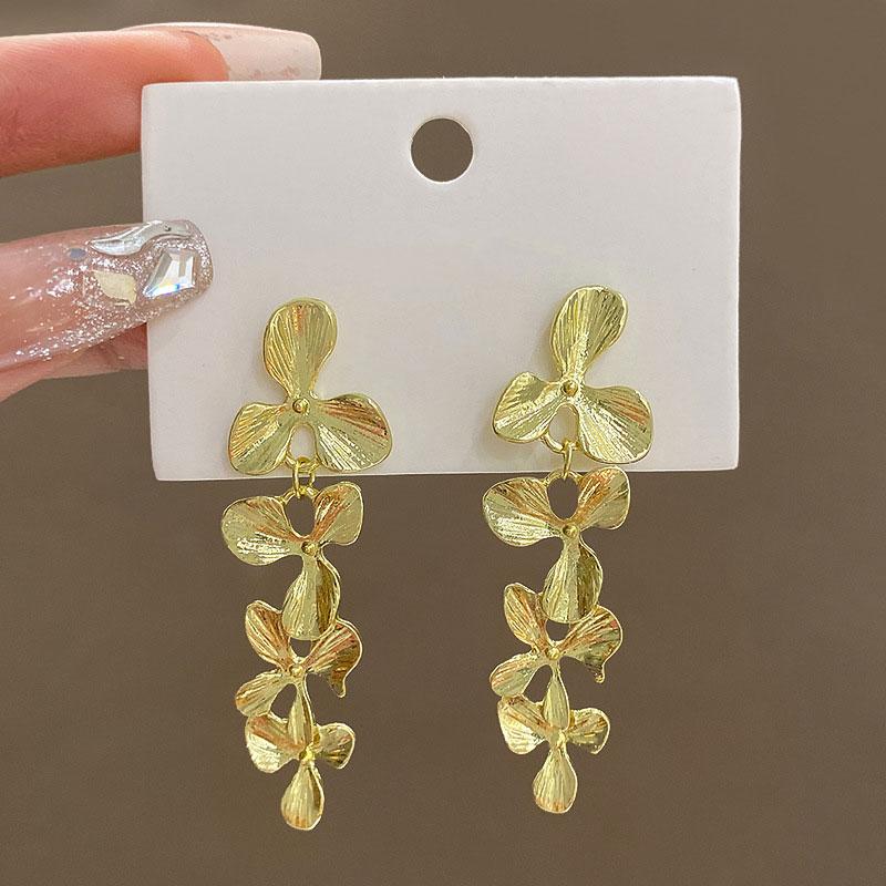 Золотые длинные серьги-подвески с листьями и цветами для женщин, ретро-серьги-подвески, ювелирные аксессуары