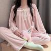 Весна Осень Повседневный Длинный Рукав Женский Двухсекционный Комплект Роскошный 2 Предмета Элегантный Fallow Solid Пижамный Комплект Домашняя Одежда Наряды