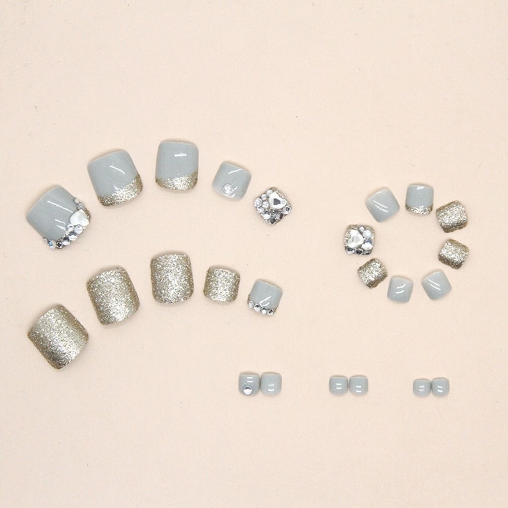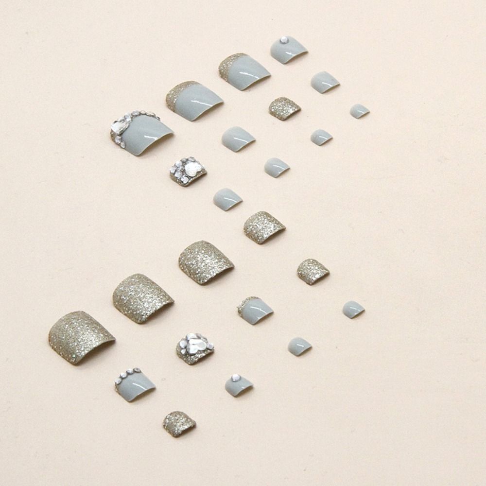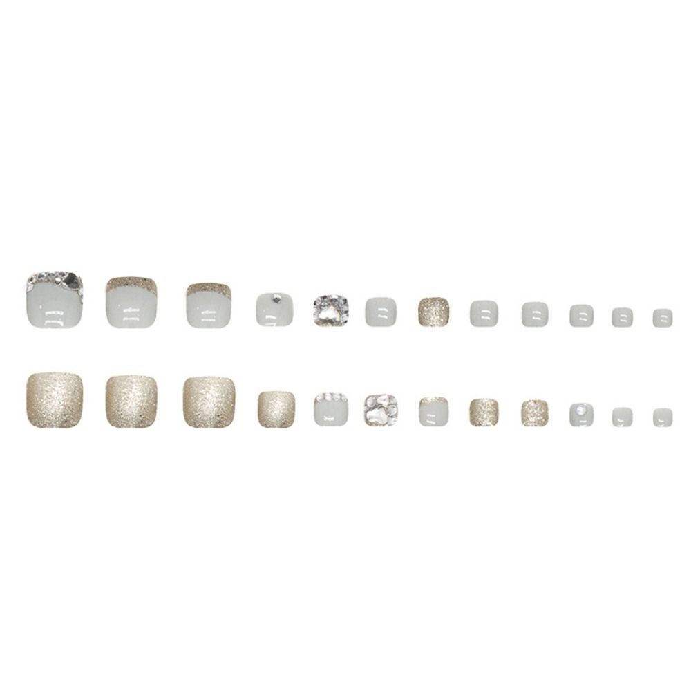 24 шт., накладные ногти для девочек, квадратные, сияющие, хрустальные, золотистые