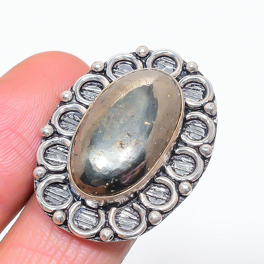 Кольцо из натурального агата пирита, драгоценный камень, стерлинговое серебро 925 пробы, размер 6 P8E37