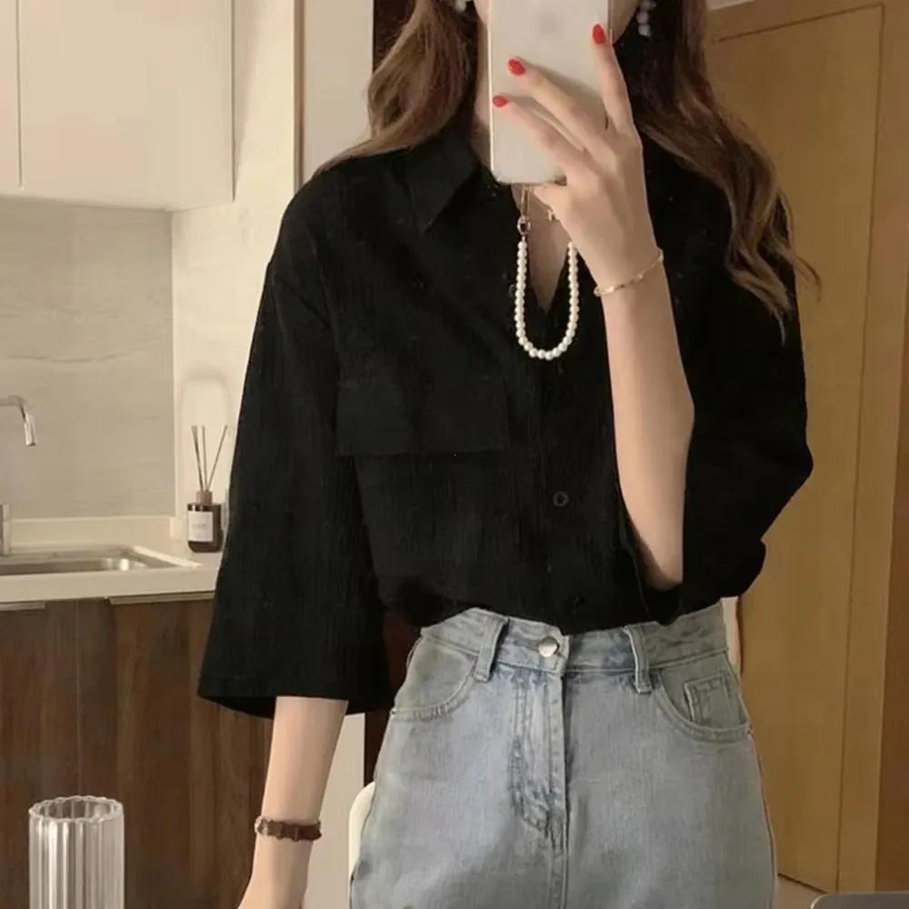 Летняя ретро-блузка с одним карманом, однобортная, с круглым вырезом, кружевная одежда, дизайн, рубашки, топ