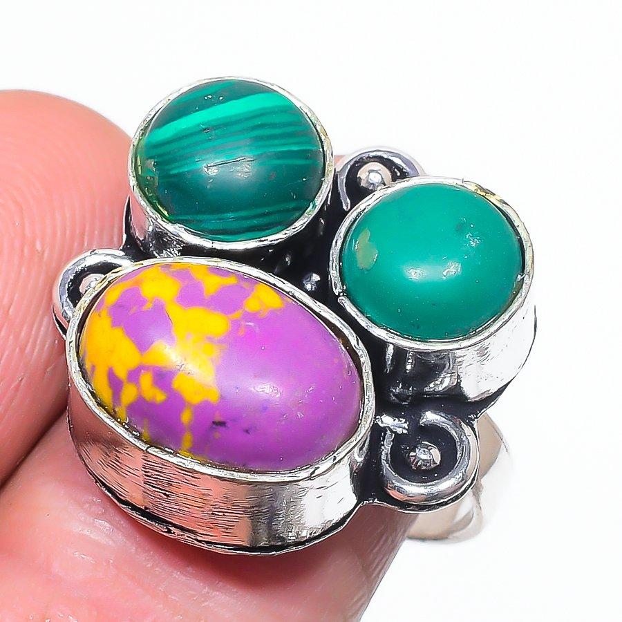 Кольцо из серебра 925 пробы с натуральным медным фиолетовым бирюзовым и малахитовым покрытием, размер 8,5 G5V14
