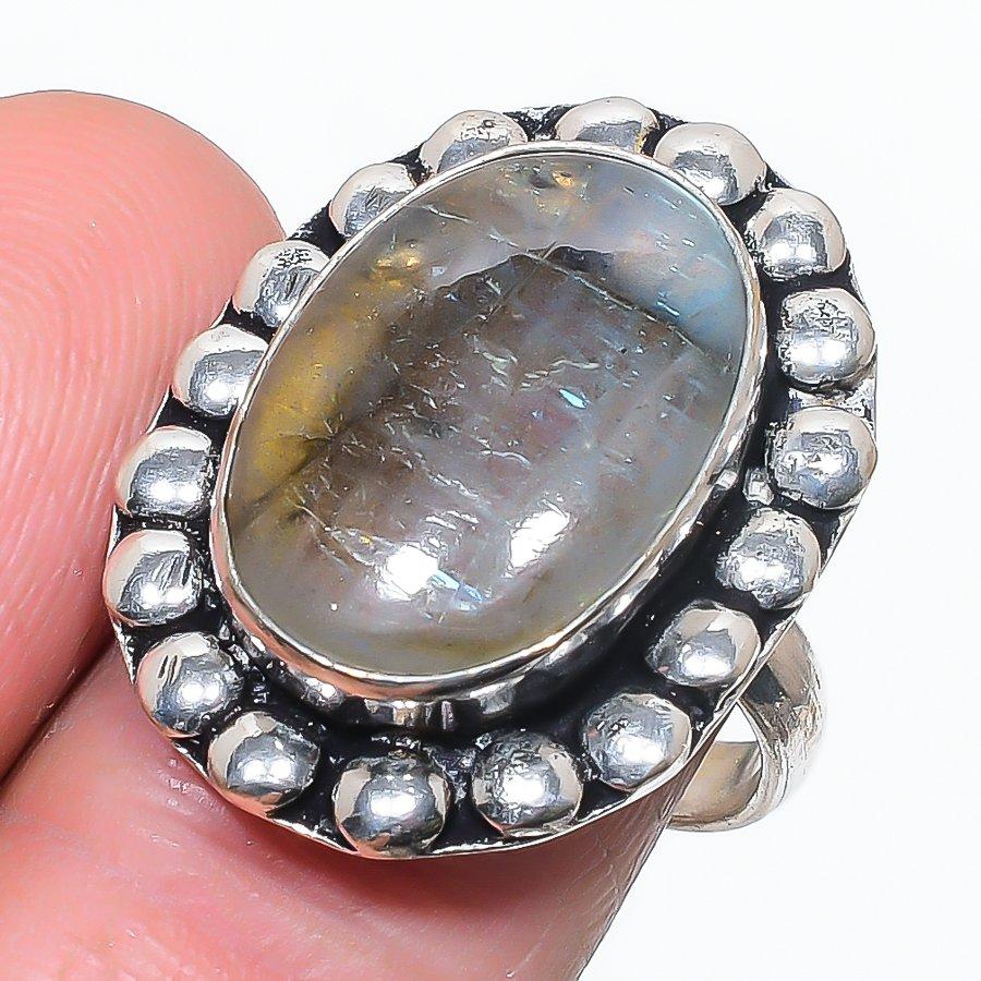 Натуральный Лабрадорит Драгоценный Камень Серебро 925 пробы Ювелирное Кольцо Размер 9 B3L44