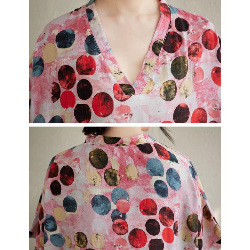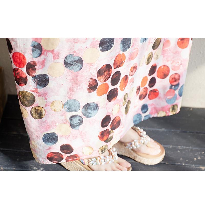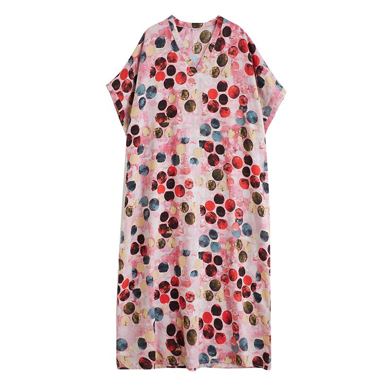 DIMANAF 2025 Летнее женское длинное платье больших размеров, оверсайз, с коротким рукавом, свободное, повседневное, базовое, с принтом в горошек, винтажное платье