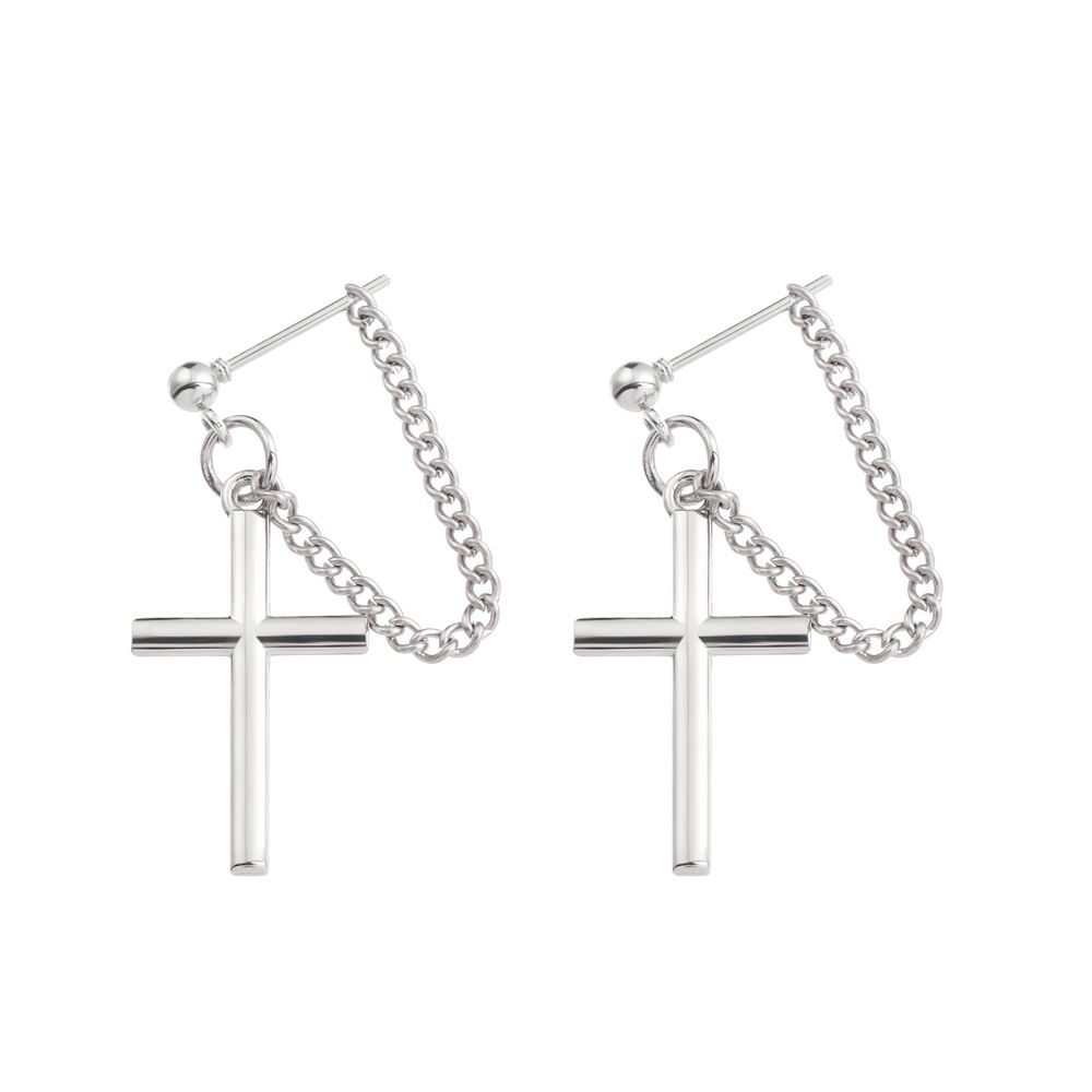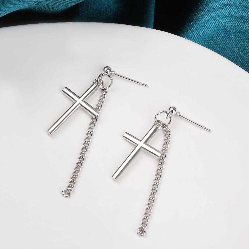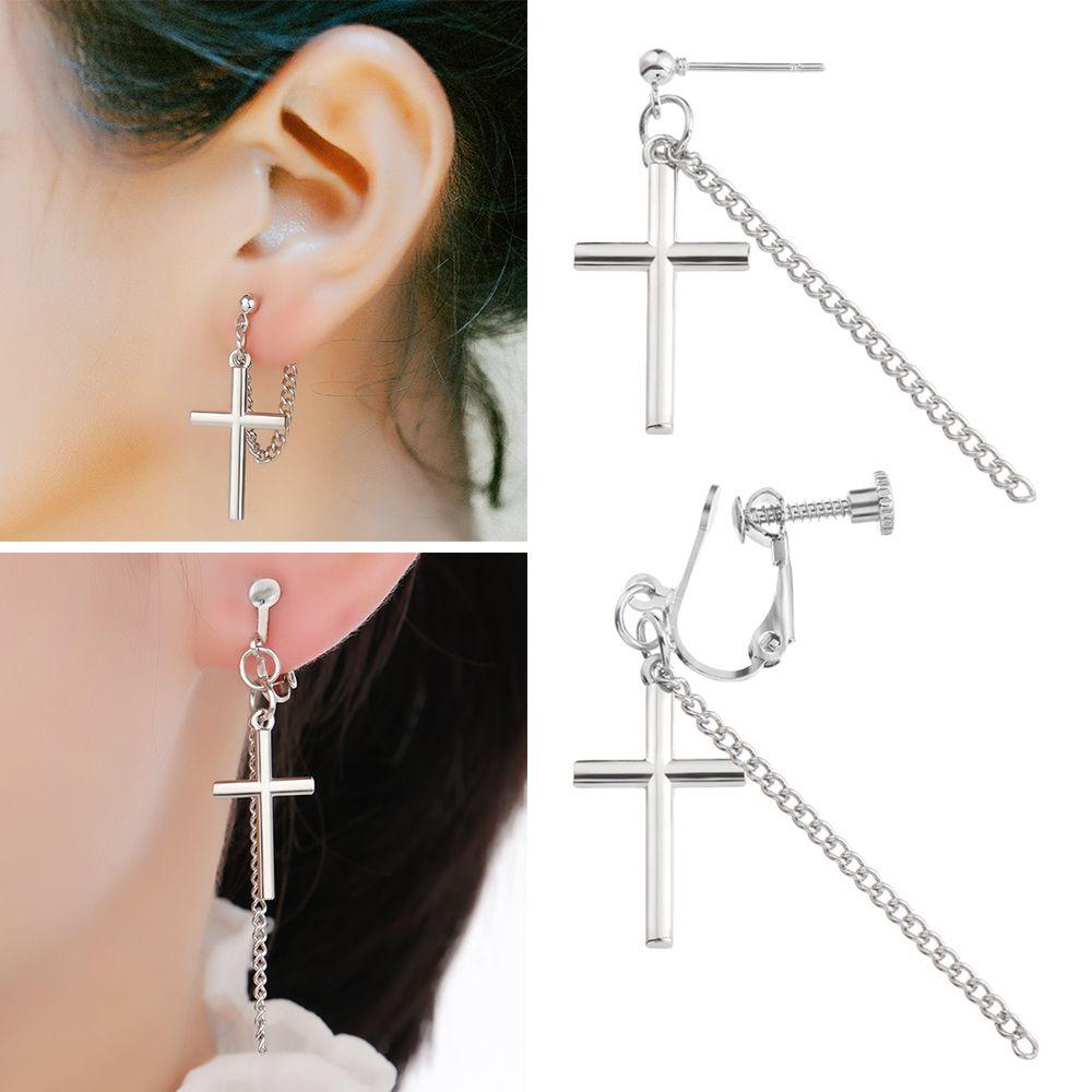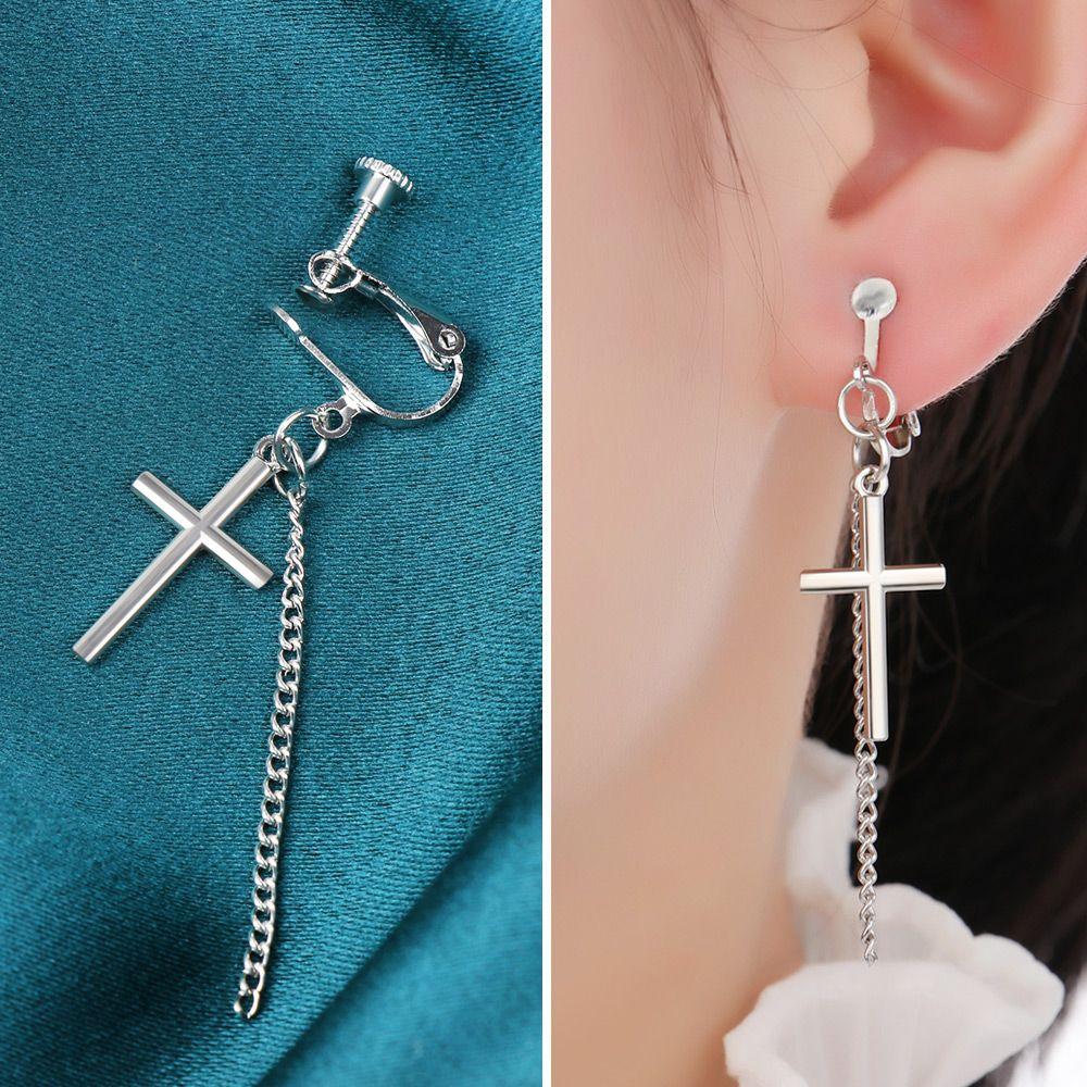 Темные Красивые Супер Крутые Серьги-клипсы на уши с крестом и цепочкой, не требующие прокола