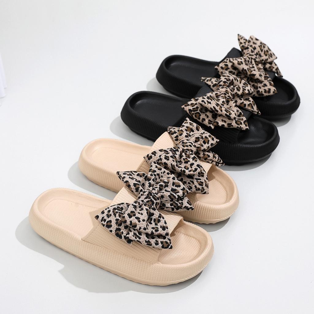 Летние женские леопардовые тапочки с бантом Soft Cloud для путешествий, отдыха, пляжная обувь, женские сандалии