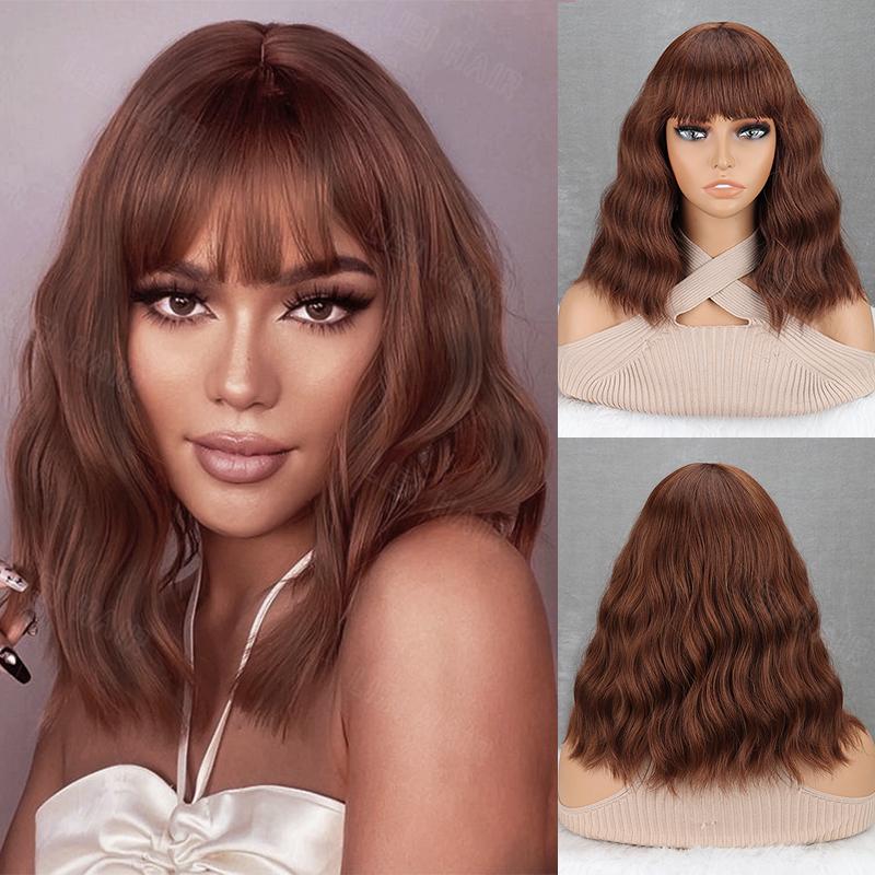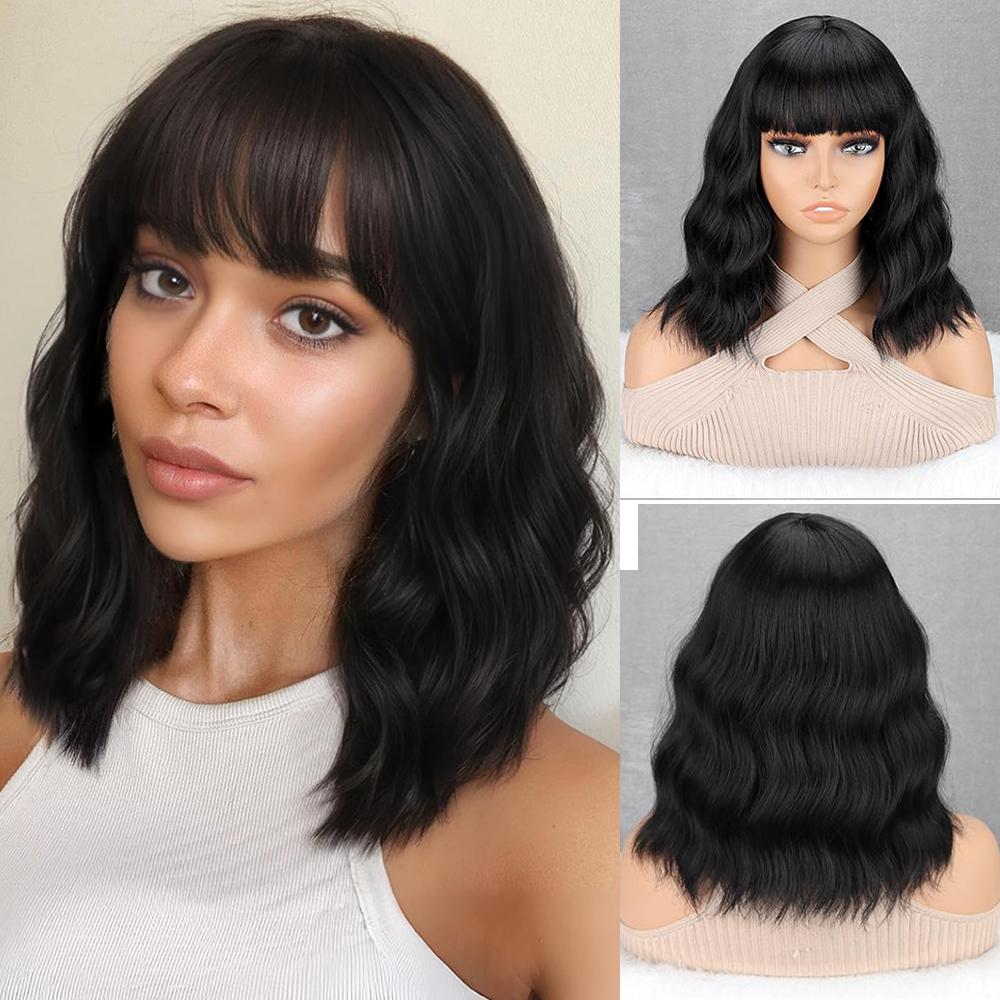MISS WIG Синтетический короткий волнистый парик с челкой, парик боб, термостойкий, натуральный, легкий и натуральный, для повседневной носки женщин