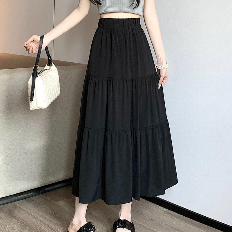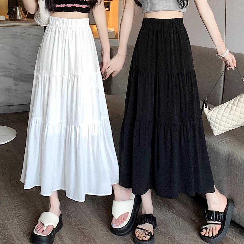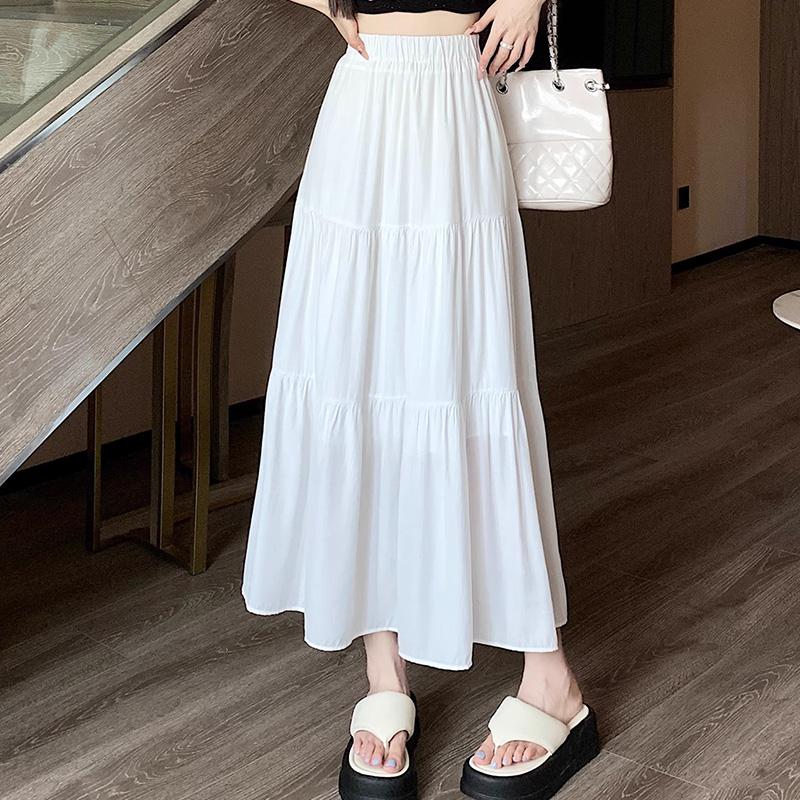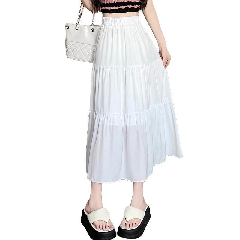 1 шт. Длинные юбки эластичные юбки женские юбки А-силуэта с высокой талией шифон лето полиэстер белый винтаж