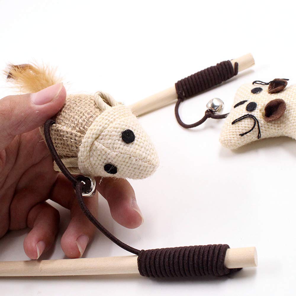 HJ Cat Ball с мышкой Рыболовный кот Деревянный кот Отсутствие случайного звонка, стержня, игры, стержня, игрушки, вождения, (Набор 10)
