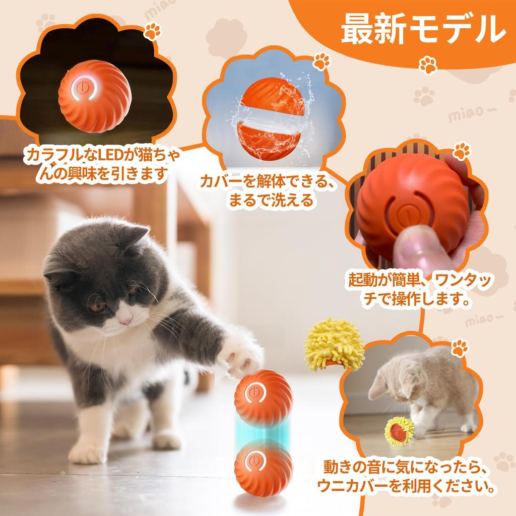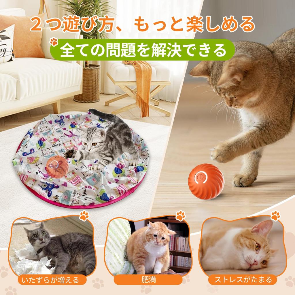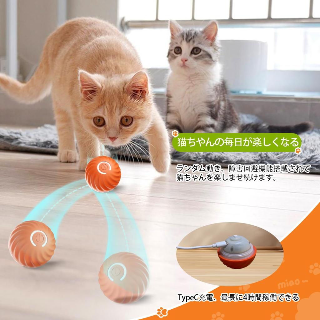 Электрическая игрушка для кошек Автоматическая кошка Тип C Идеально подходит для игры в одиночку, Мяч, Мяч, Перезаряжаемый, (оранжевый)