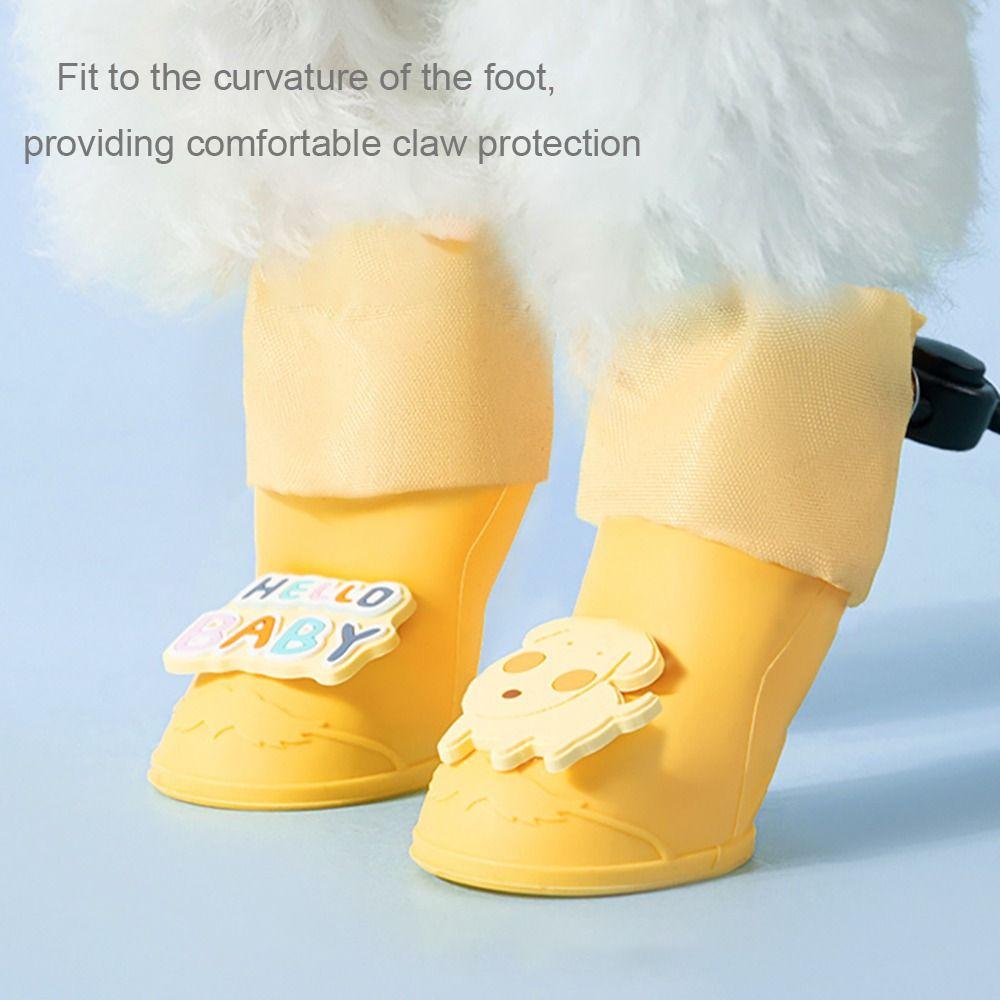 4 шт./компл. Водонепроницаемые силиконовые дождевые ботинки для питомцев, мультяшные чехлы для лап, милые протекторы для лап питомцев, для улицы