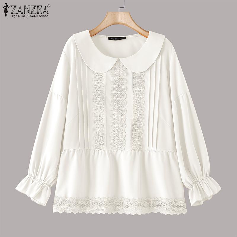 ZANZEA Женские повседневные кружевные лацканы с длинным рукавом блузки — купить товар онлайн с бесплатной доставкой до всему миру!
