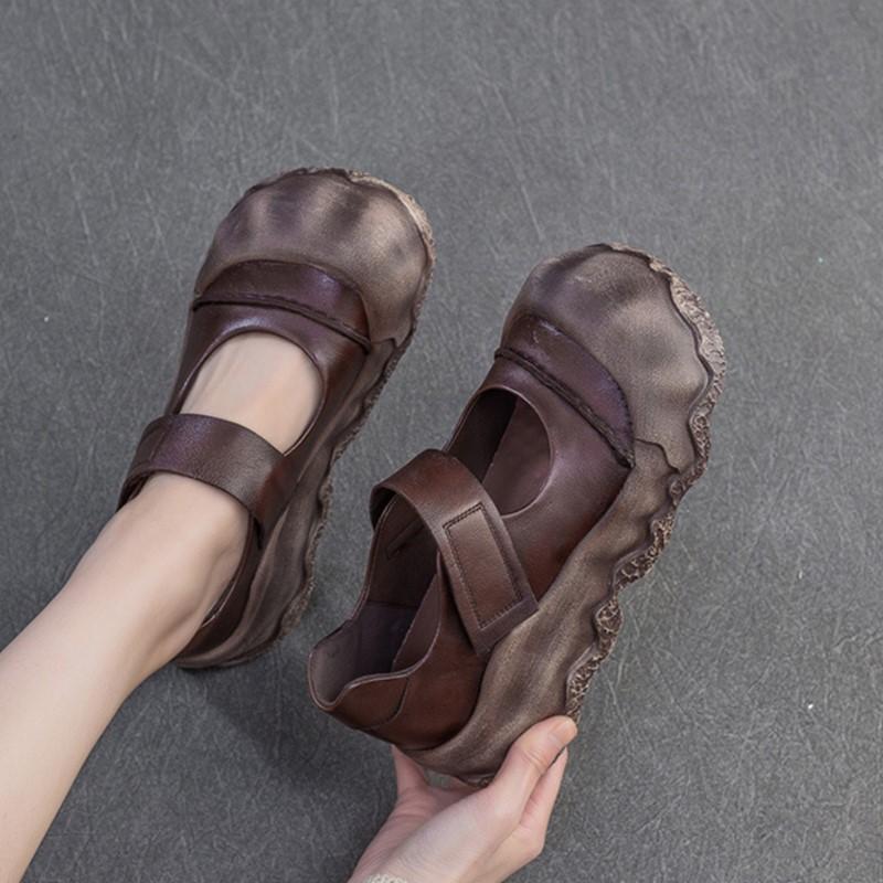 Johnature Туфли в стиле ретро с круглым носком и толстой подошвой. Женские туфли на плоской подошве из натуральной кожи с мягкой подошвой.