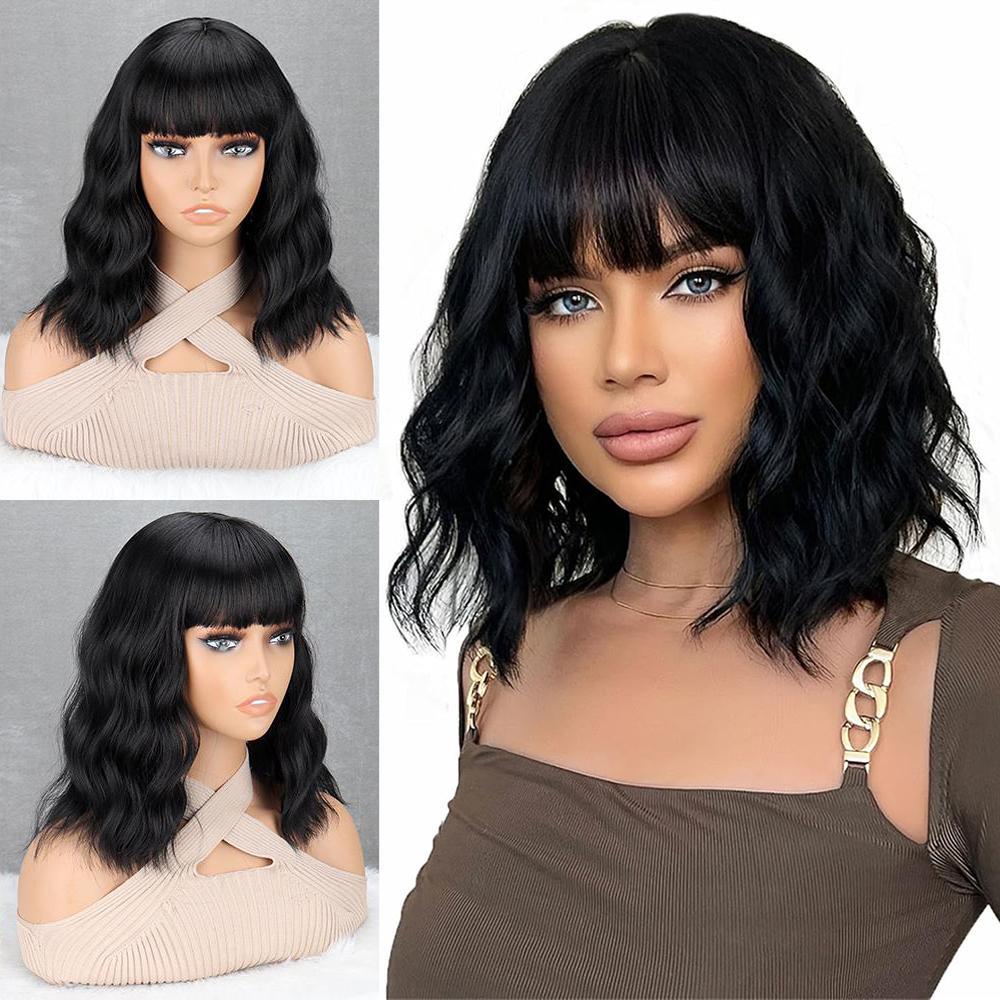 LISI HAIR Короткий волнистый синтетический парик длиной до плеч с челкой, термостойкие натуральные волосы для женщин, повседневное использование в косплее