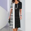 Черно-белый принт с музыкальными нотами, летнее новое женское платье, элегантное платье, женское модное платье миди, большие размеры для женщин