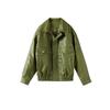 Оливково-зеленая кожаная куртка, пальто, силуэт, винтажный, уличный тренд, молния, лацкан, короткое пальто, свободный повседневный топ, верхняя одежда, осень
