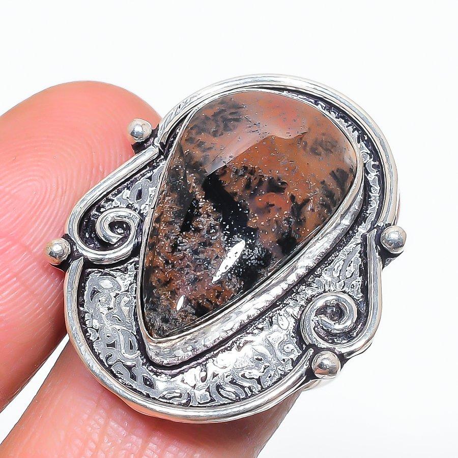 Натуральный медовый дендритовый драгоценный камень, ювелирное кольцо из стерлингового серебра 925 пробы, размер 8 n9Y98