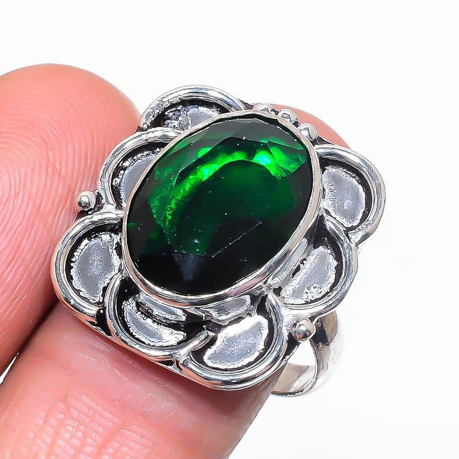 Натуральный Хромовый Диопсид Драгоценный Камень 925 Стерлинговое Серебро Ювелирное Кольцо Размер 9.5 M4j21